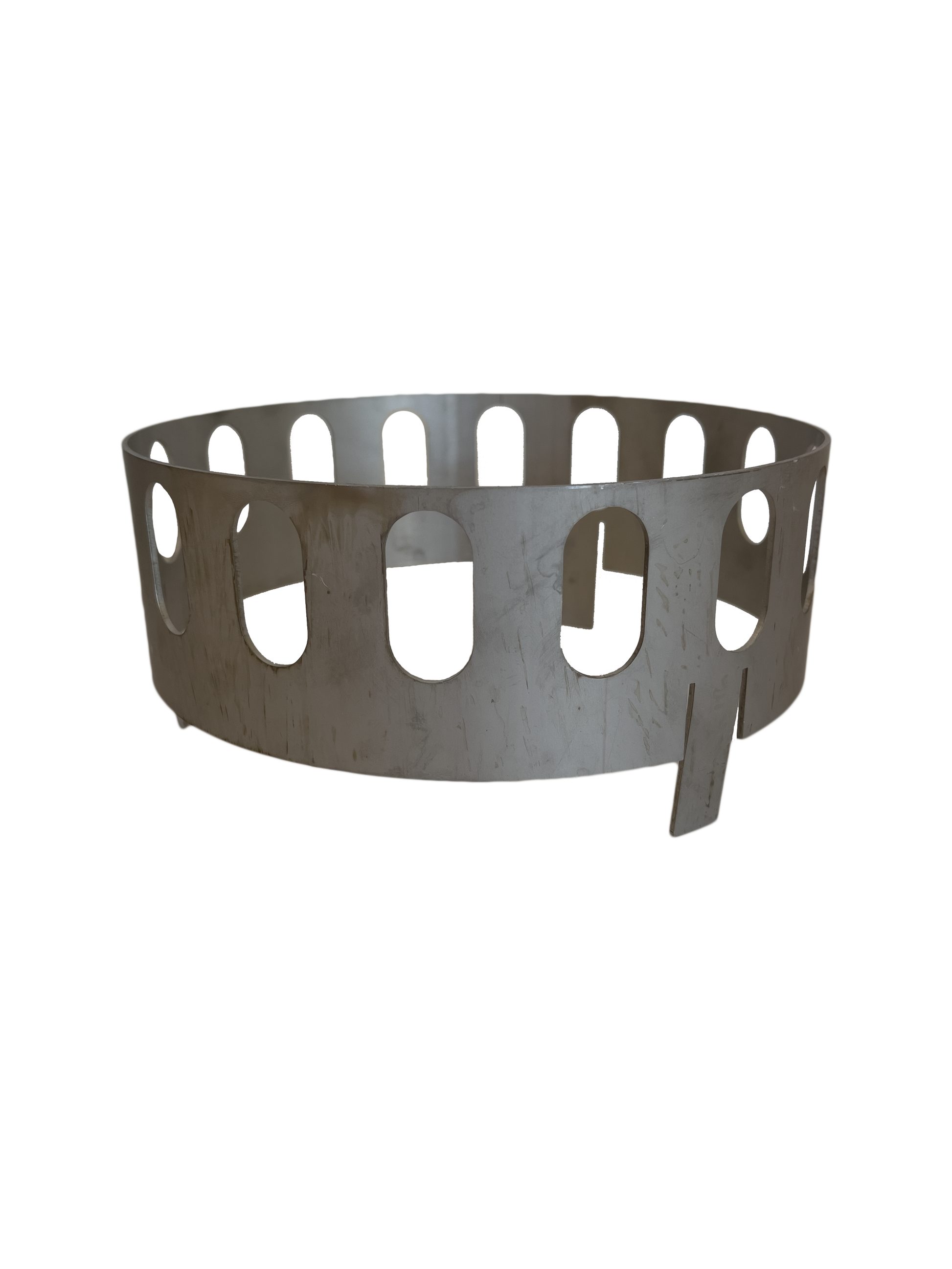 Modulares Grillsystem mit Feuerschale, gelochter Feuerkorb, Feuerplatte (mit und ohne Grillrost) und Wokaufsatz.